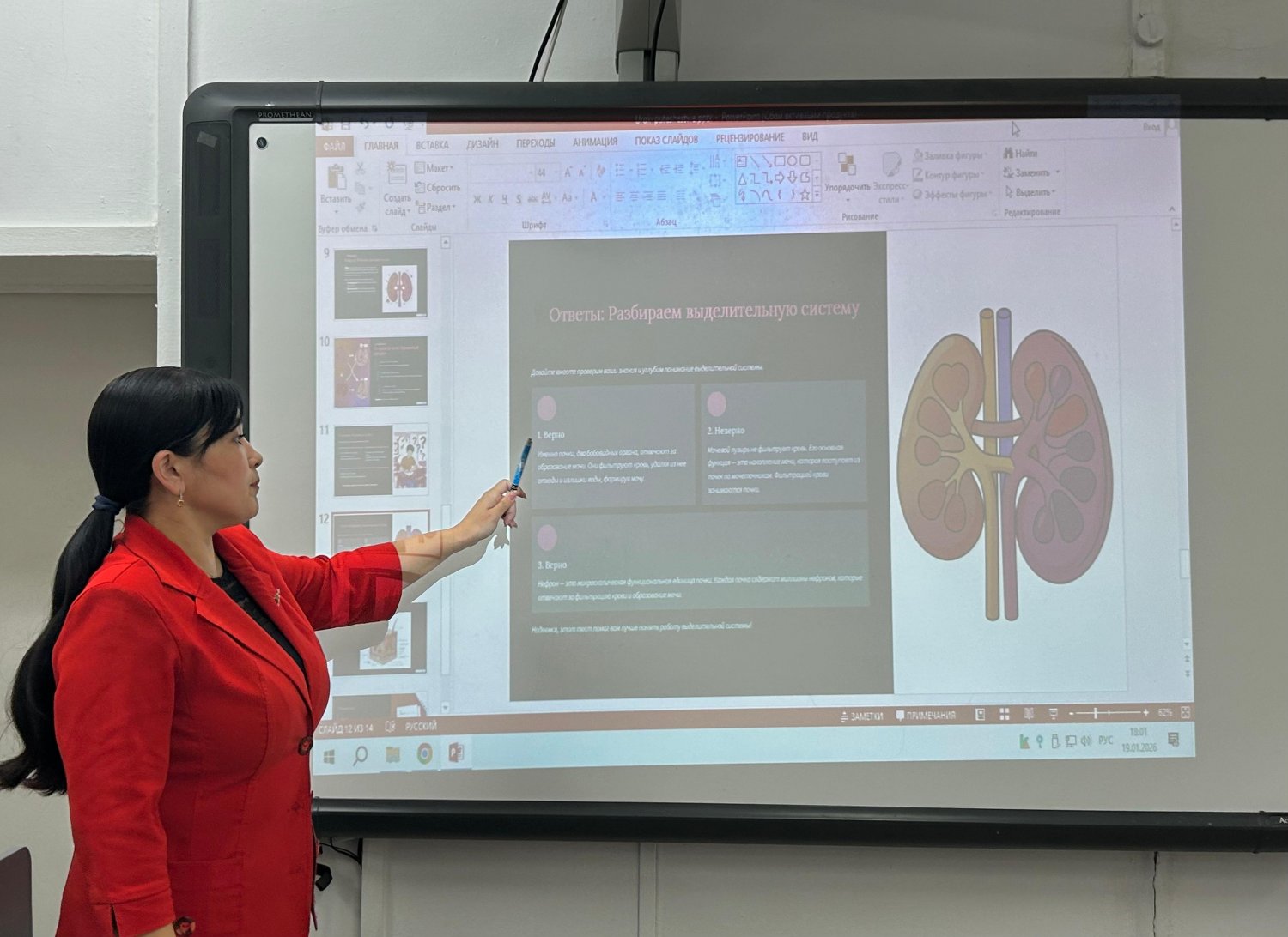 - биология пәні мұғалімі Битаева А.А. «Зәр шығару жүйесі бойынша саяхат» (8 «Б» сынып);