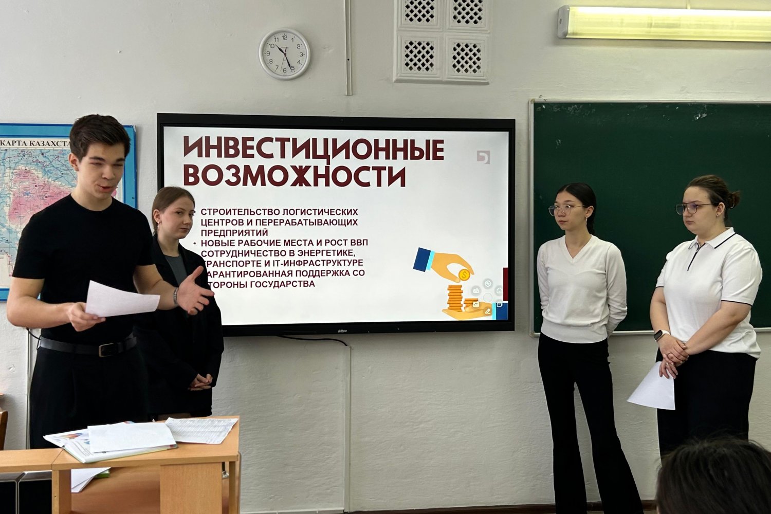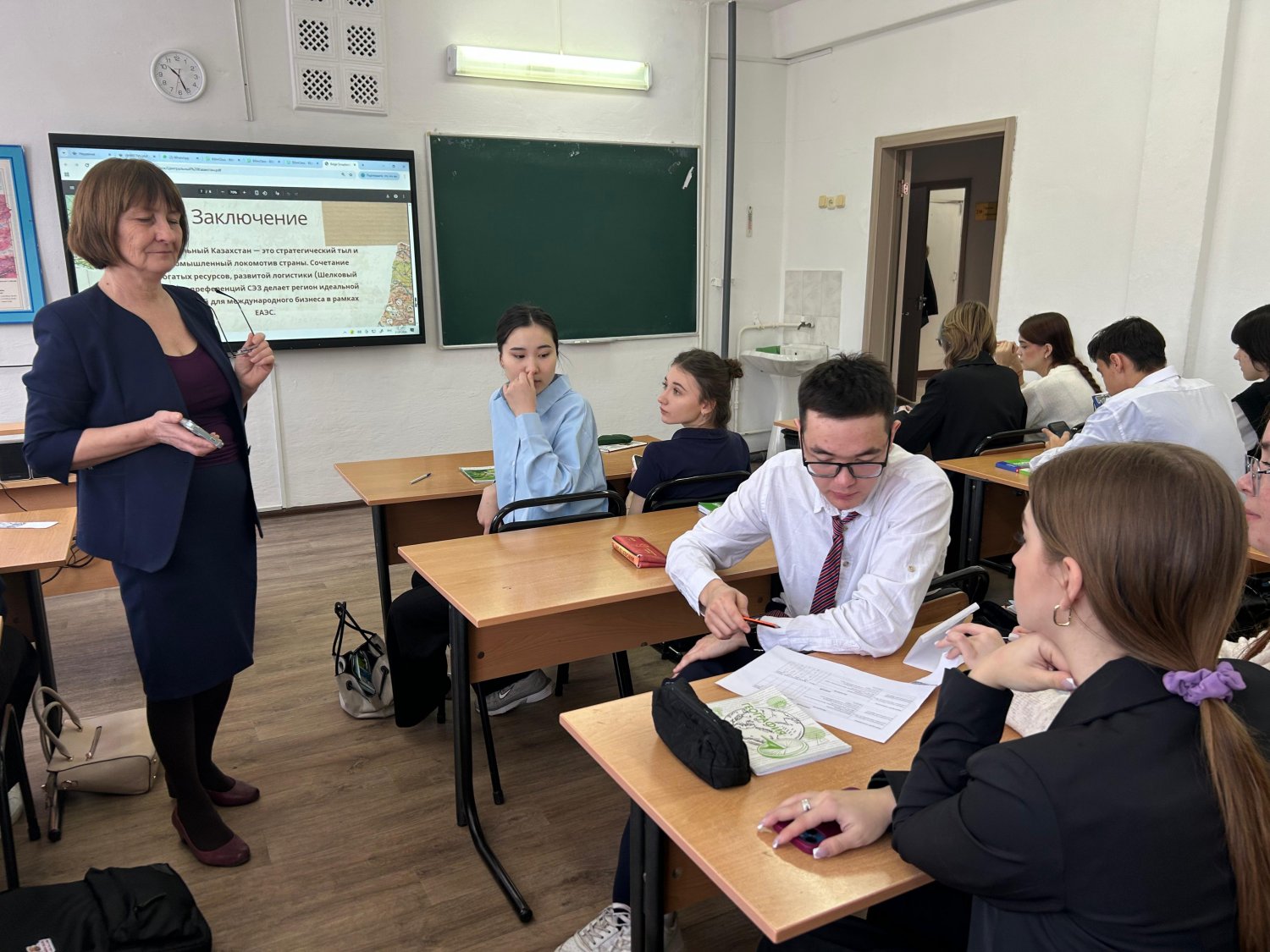 - география пәні мұғалімі Домничева Л.К. «Қазақстан Республикасы өңірлерінің геоэкономикалық жағдайы мен әлеуеті» (11 «Б» сынып);