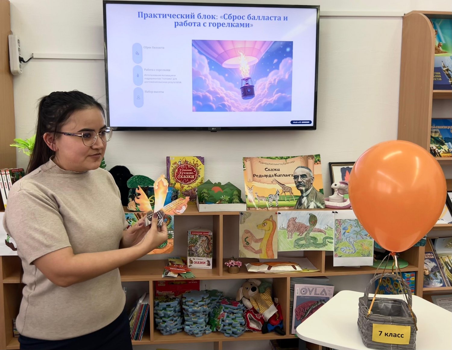 Физика пәнінің мұғалімі Назарова Г.А. сабақтарда қолданылатын жұмыс түрлері туралы айтып өтті, ал ағылшын тілі пәнінің мұғалімі Шерубаева Д.А. 7-сыныптардың білім беру үдерісінде жасанды интеллект элементтерін қолдану тәжірибесін таныстырды.