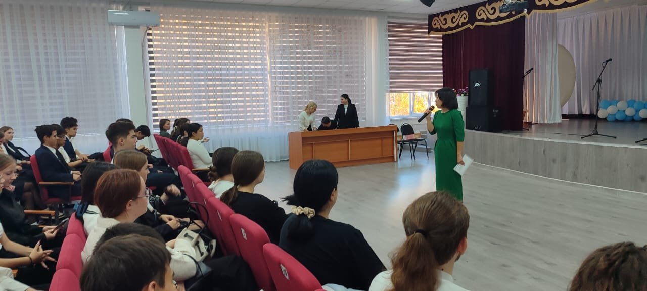 Мектеп түлектерінің мемлекеттік секторда жұмыс істеу мүмкіндіктері туралы түсінігін кеңейту мақсатында мемлекеттік қызмет тақырыбында кәсіби бағдар беру кездесуі өткізілді.