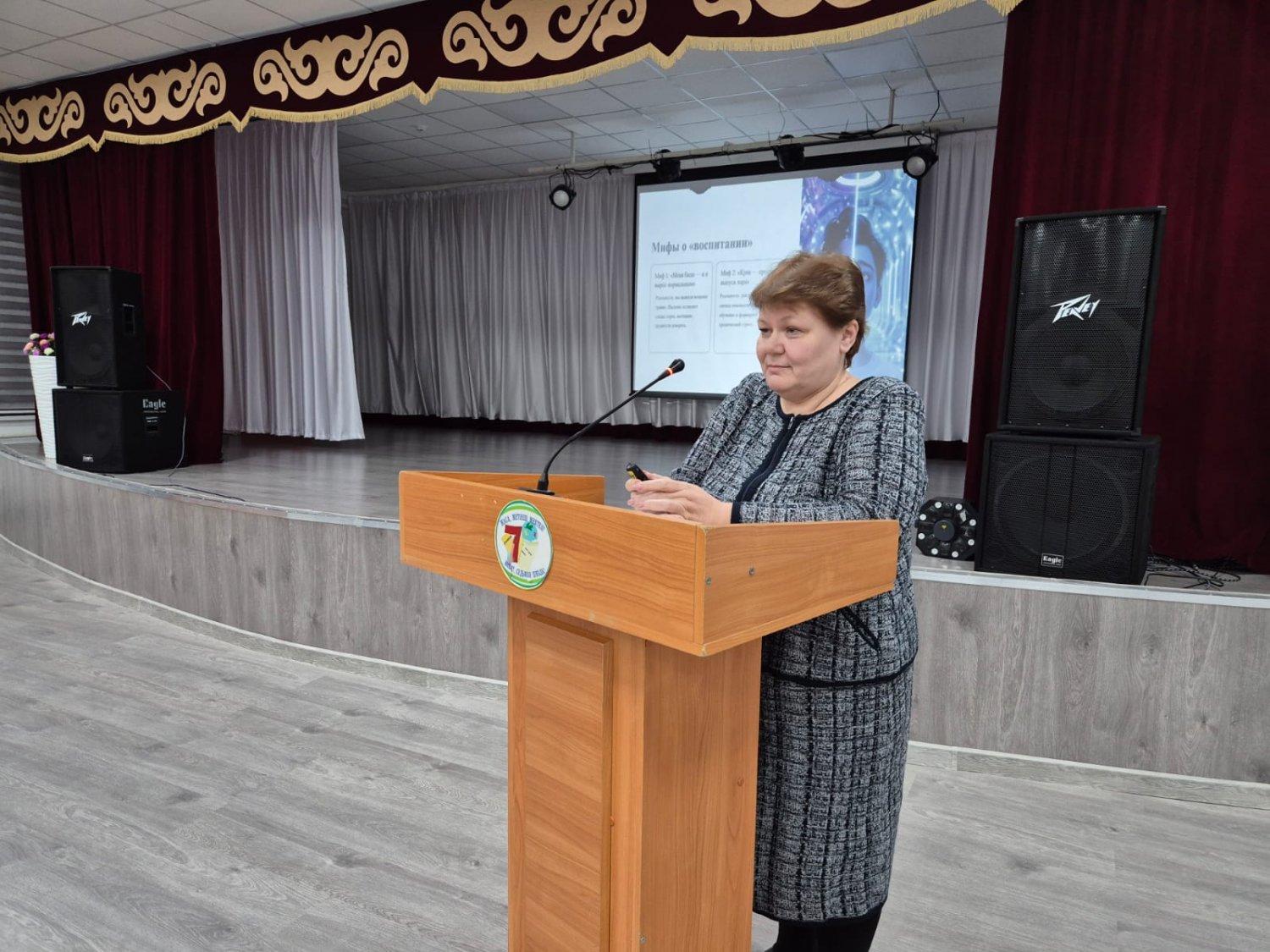 Әлеуметтік педагог Упорова И.Н. «Отбасындағы тұрмыстық зорлық-зомбылық» тақырыбында сөз сөйлеп, үйде өзара құрмет, сенім және эмоционалдық қауіпсіздік атмосферасын қалыптастырудың қажеттілігіне назар аударды.