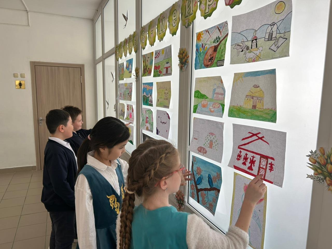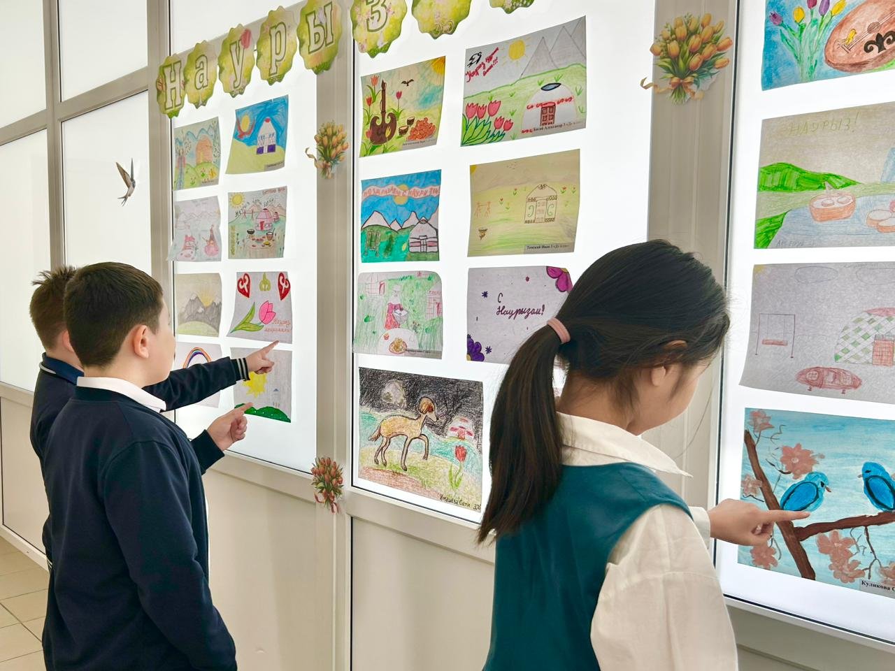 Біздің мектепте 3-сынып мұғалімдері Наурыз мерекесіне арналған сурет көрмесін ұйымдастырды. Жас суретшілер өз жұмыстарында көктемгі жаңарудың әсемдігін, ұлттық дәстүрлерді және мерекелік көңіл-күйді үлкен шабытпен бейнеледі. Әрбір туынды жылылыққа, жарқын бояуларға және туған мәдениетке деген шынайы сүйіспеншілікке толы.