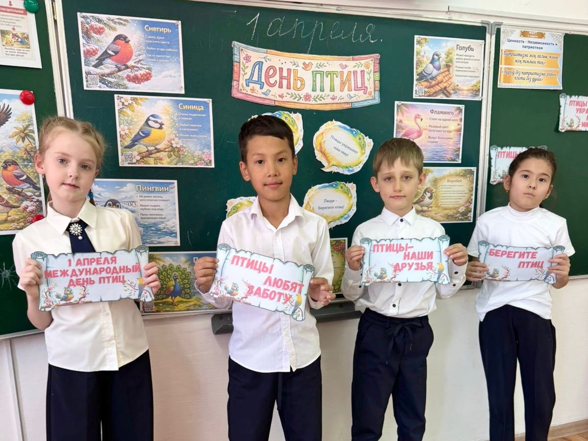 «Қамқор» жобасы аясында және Халықаралық құстар күніне орай 1–4 сыныптар параллелінде қанатты достарымызға арналған бірқатар сынып сағаттары өткізілді. Іс-шаралар барысында оқушылар құстардың табиғаттағы маңызы, экологиялық тепе-теңдікті сақтаудағы рөлі туралы білді, сондай-ақ көктем мезгілінде оларға қамқорлық жасаудың қаншалықты маңызды екенін түсінді.