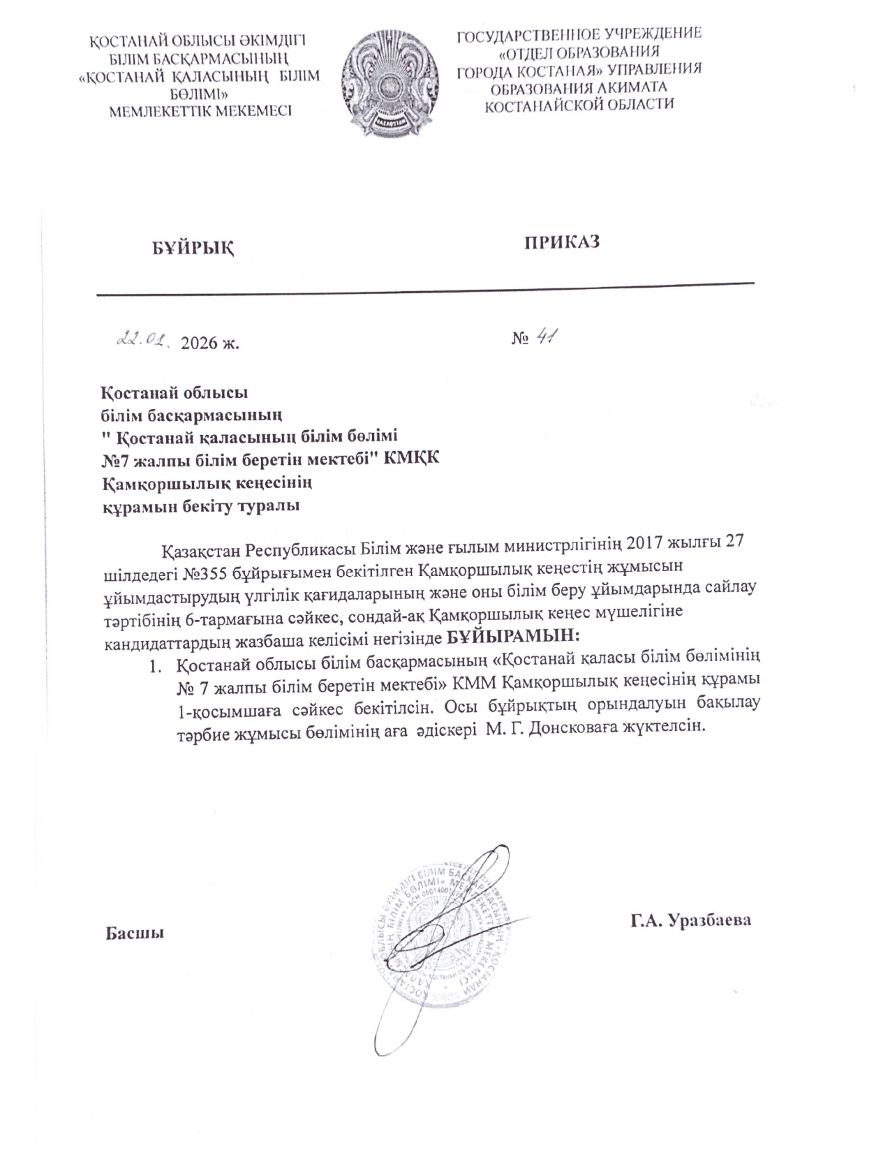 «Қостанай қаласы білім бөлімінің №7