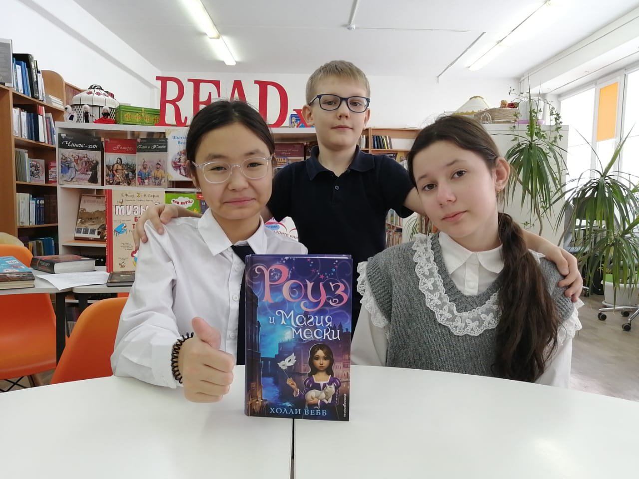 Ученики 5 «Б» класса (классный руководитель — Бекмагамбетова Л.Ж.) приняли участие в акции и подарили библиотеке увлекательную книгу «Роуз и магия маски»