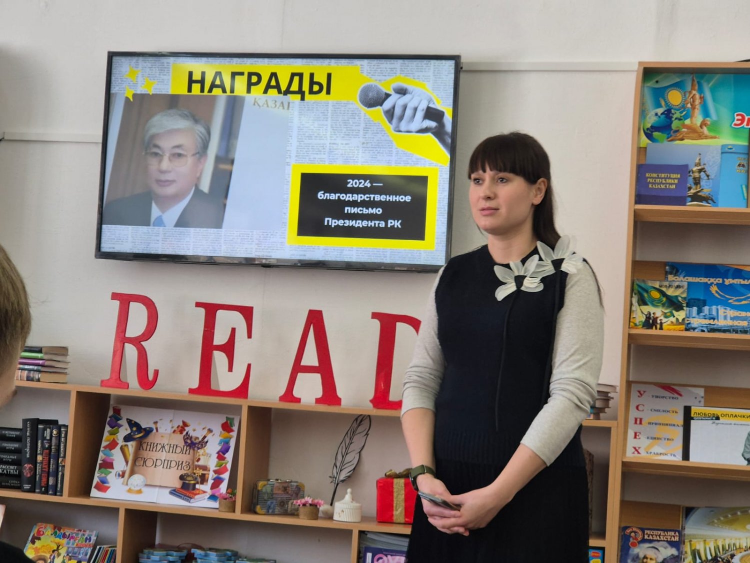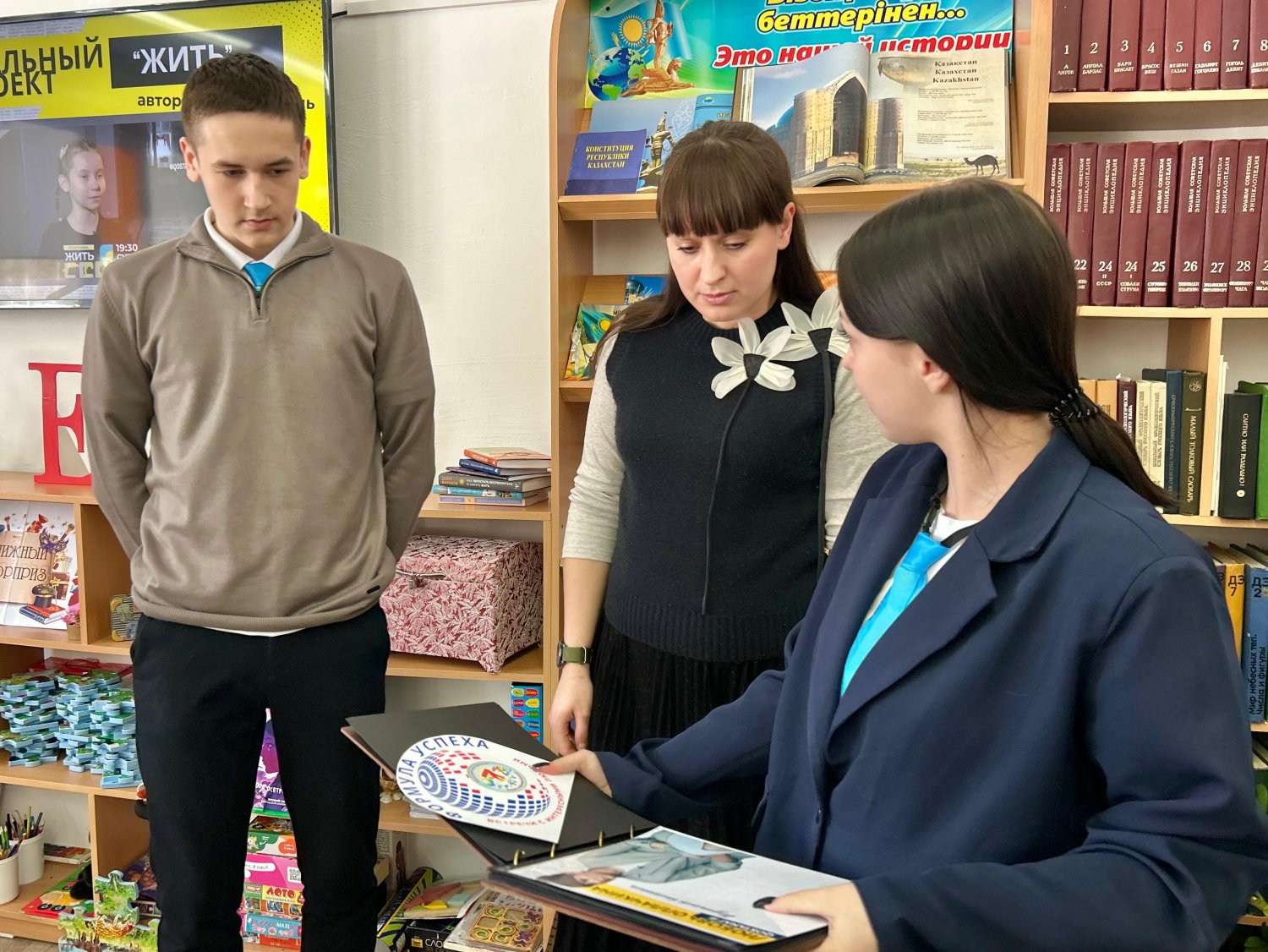Сегодня в школьной библиотеке царила удивительная, вдохновляющая атмосфера. В рамках диалог-площадки «Формула успеха. Встречи с интересными людьми» учащиеся 9 «А» класса (классный руководитель Довбня Е.С.) встретились с журналистом телеканала «Костанай Казахстан» - Любовью Оплачкиной.