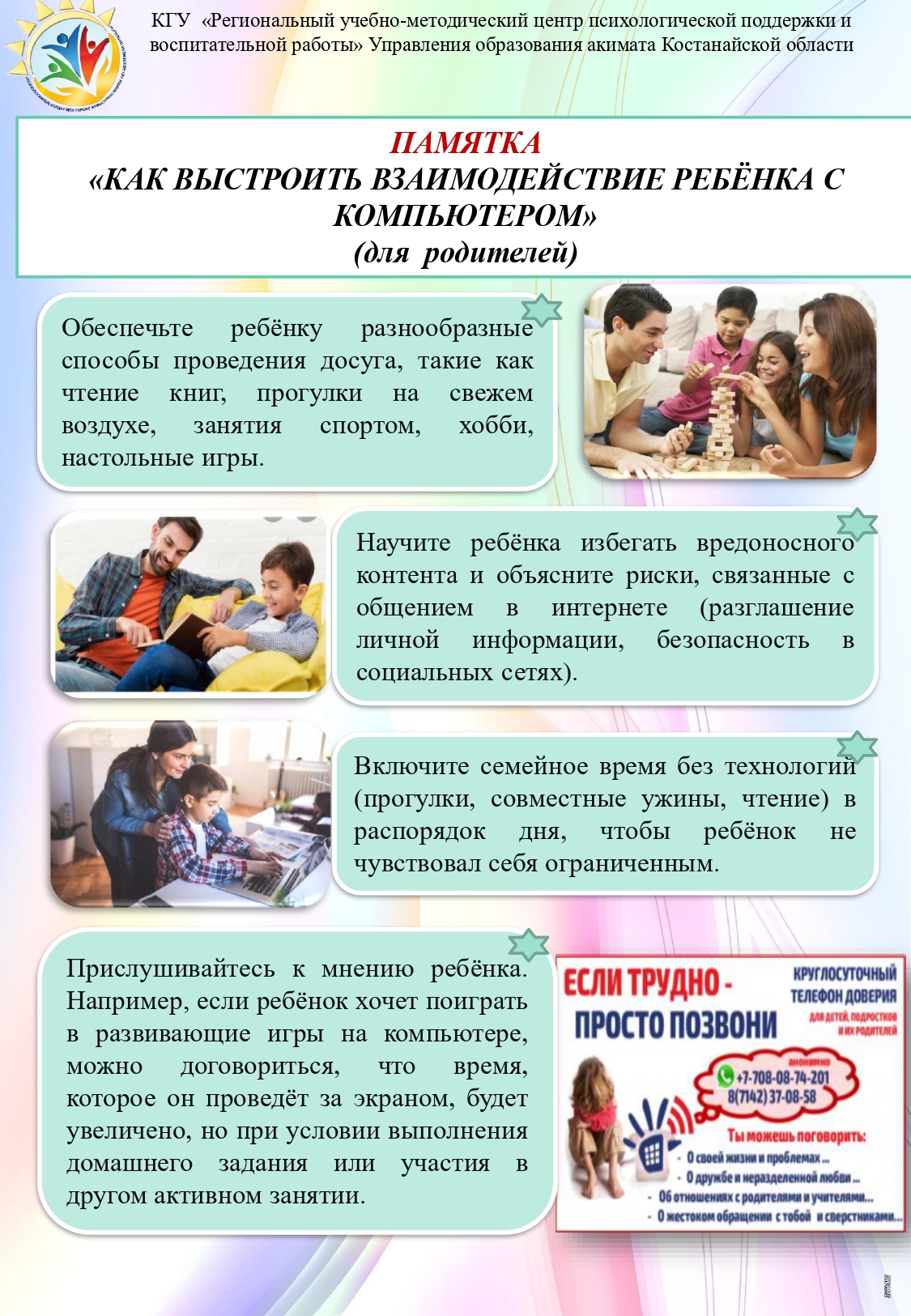 ПАМЯТКА «Как выстроить взаимодействие ребёнка с компьютером» (для родителей)