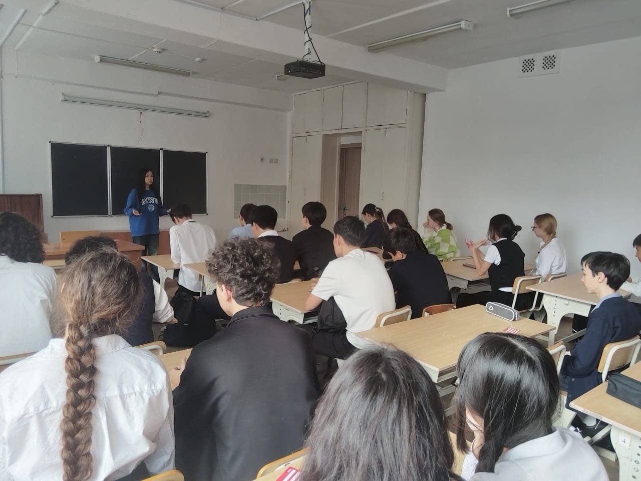 В рамках профориентационной работы в школе состоялась встреча учащихся 10–11 классов с представителем Казахского гуманитарно-юридического университета (КАЗГЮУ). Целью мероприятия было знакомство старшеклассников с юридическими и гуманитарными направлениями подготовки, правилами поступления, а также перспективами карьерного роста после окончания вуза.