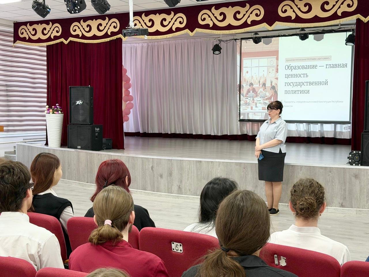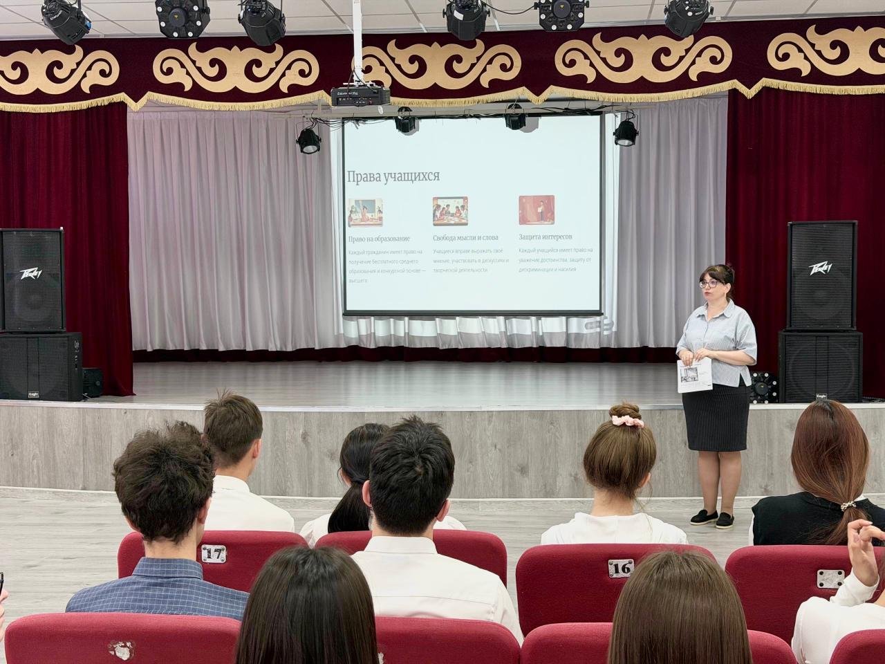 Целью классного часа стало разъяснение учащимся содержания новой Конституции Республики Казахстан, повышение их правовой грамотности и формирование гражданской ответственности. В ходе занятия школьники познакомились с основными положениями Конституции, обсудили значение прав и обязанностей граждан, а также роль образования как одного из ключевых приоритетов государственной политики.