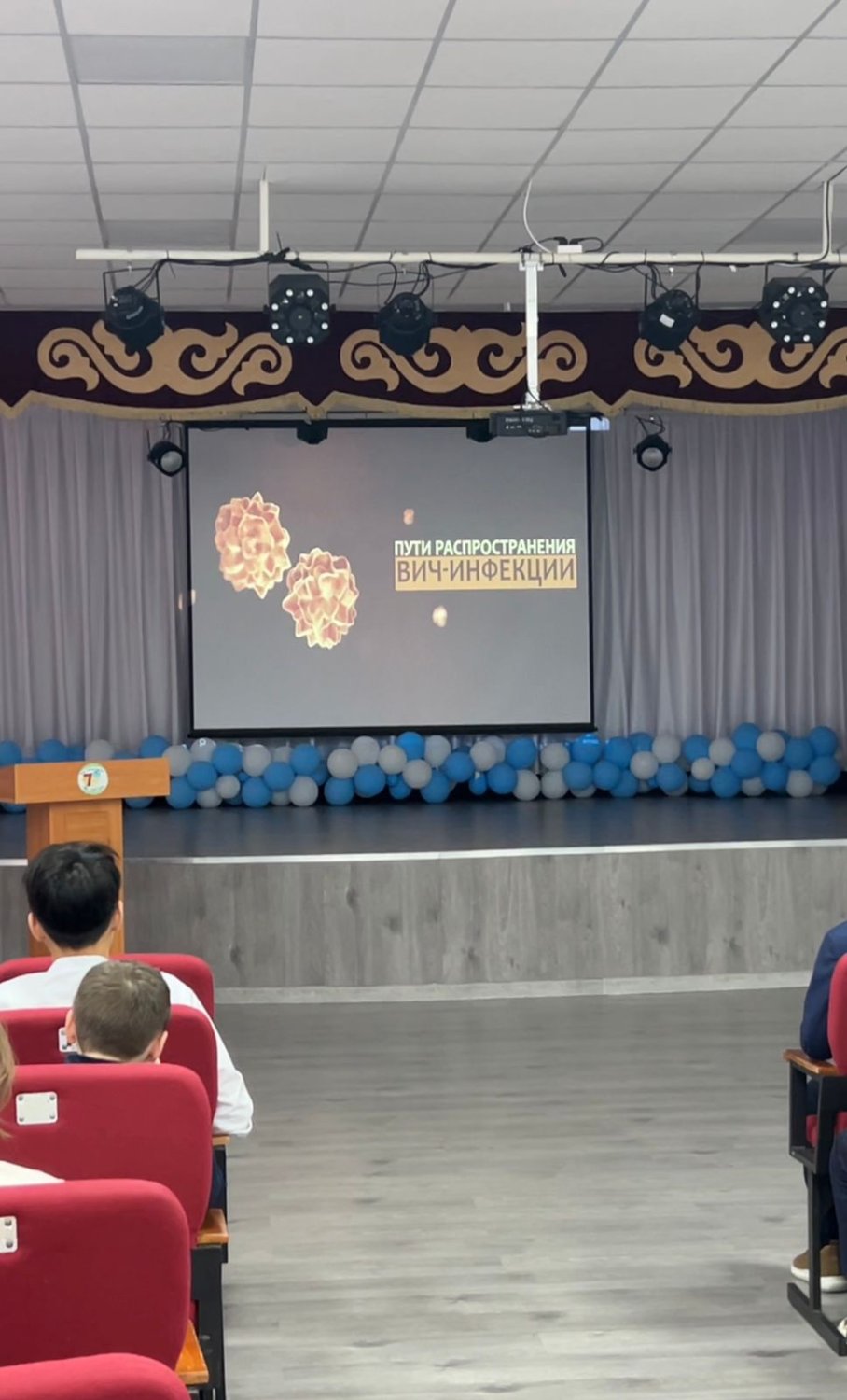 19 ноября 2025 года в КГУ «Общеобразовательная школа Nº7» города Костаная прошла беседа с учащимися 8-х классов, посвящённая Всемирному дню борьбы со СПИД под слоганом «От вызовов - к преобразованиям в ответе на ВИЧ».