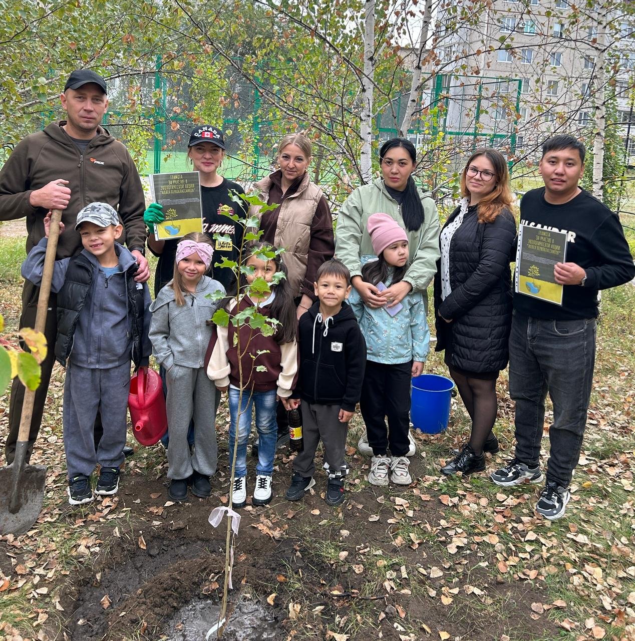 Вместе с родителями и учителями ребята высадили молодые деревца, подарив школьному двору новую зелёную жизнь.