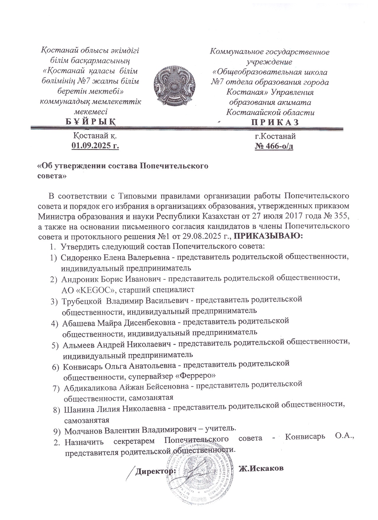 Об утверждении состава Попечительского совета
