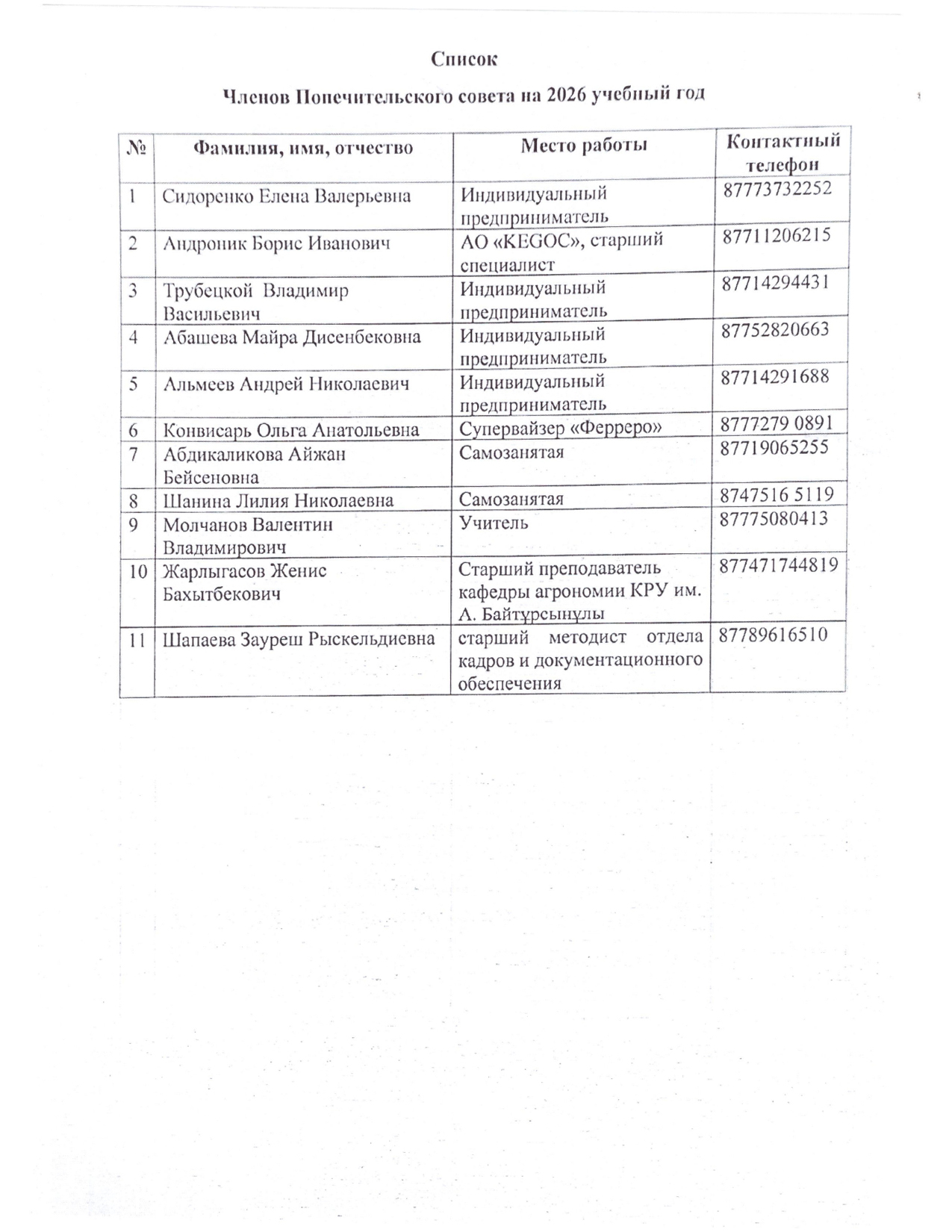 Список членов Попечительского совета