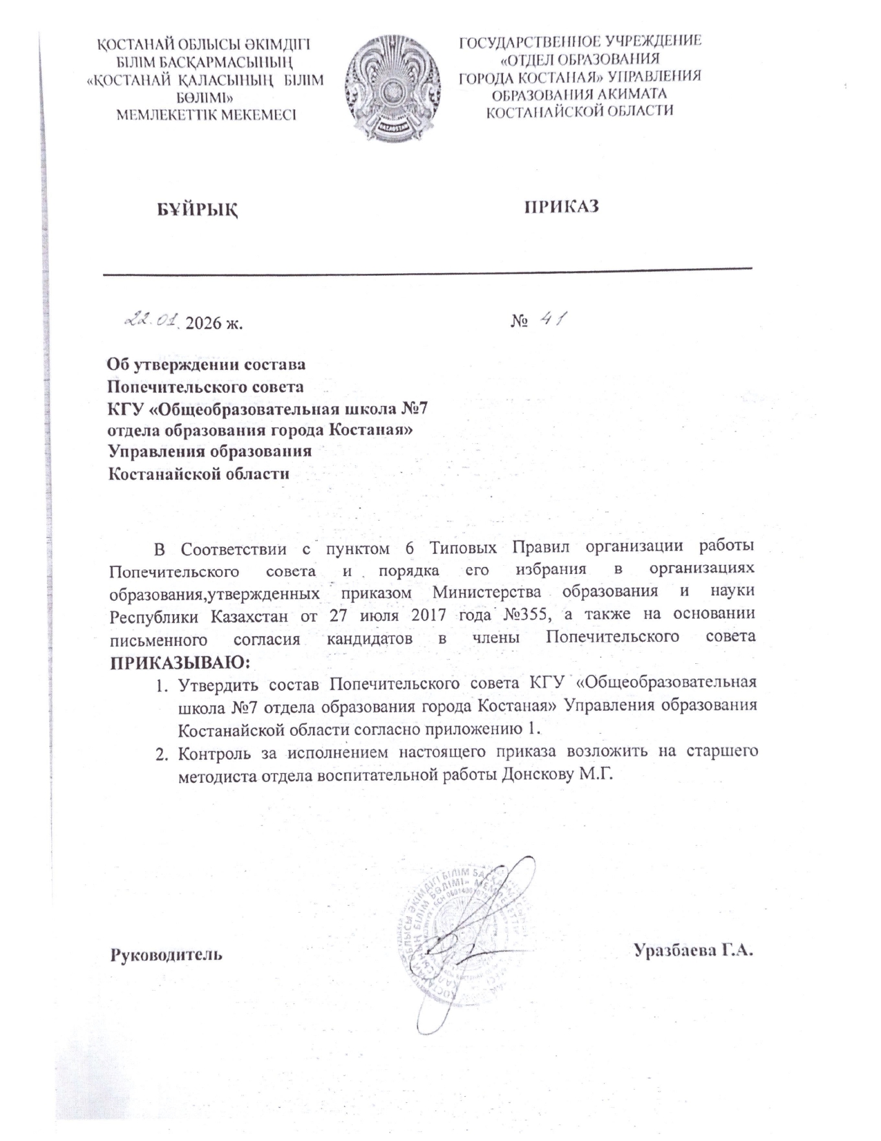 отдела образования города Костаная"